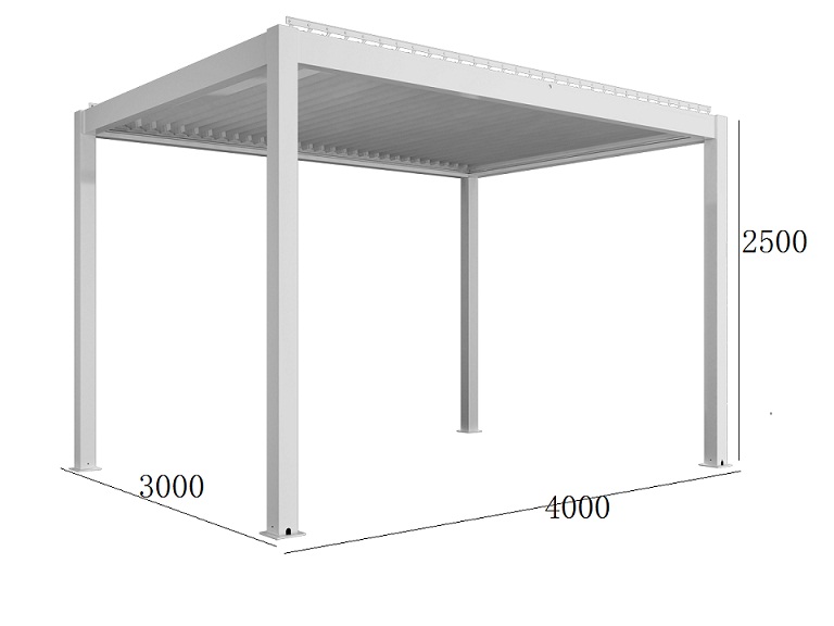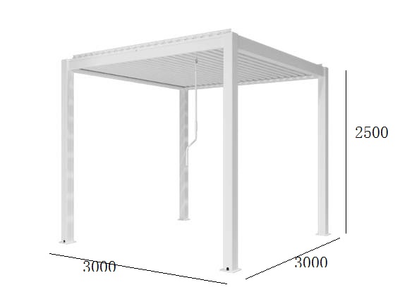 The pergola is available in two different sizes. The height of the pergola is unchanged regardless of length and width. You select the size you want . - 3x3 meters
