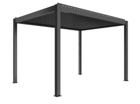 Premium pergola with slats that give you sun protection during the day and cosiness factor under the stars in the evening! The pergola is made of strong aluminum powder coated in dark gray / anthracite. It can be operated by motor-drive system or manual system by handcrank.